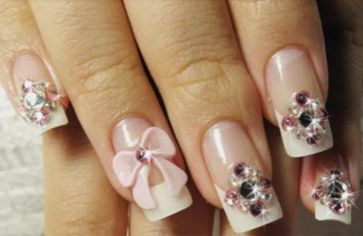 Las uñas con diamantes imitación son super femeninas pero hay que saber colocarlas para que no quede recargado, aporte estilo y luz al look y no parezca colocado al azar. Conviene elegir antes que nada las líneas en donde se colocarán.