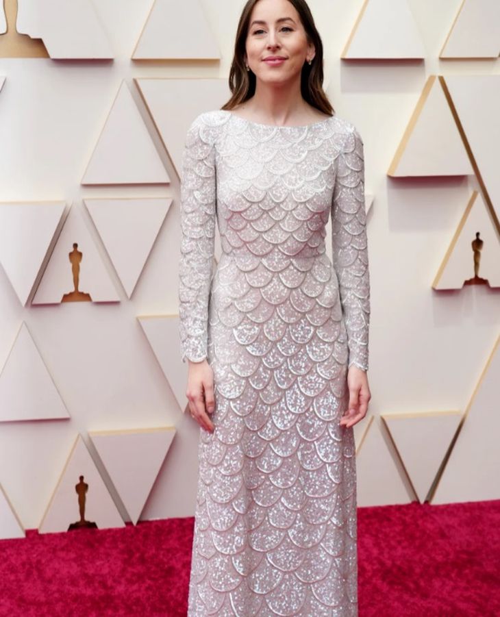 Otra joya de la noche fue el diseño que eligió Alana Haim la actriz Alana Haim (protagonista de Licorice Pizza), con un vestido color plata de Louis Vuitton.