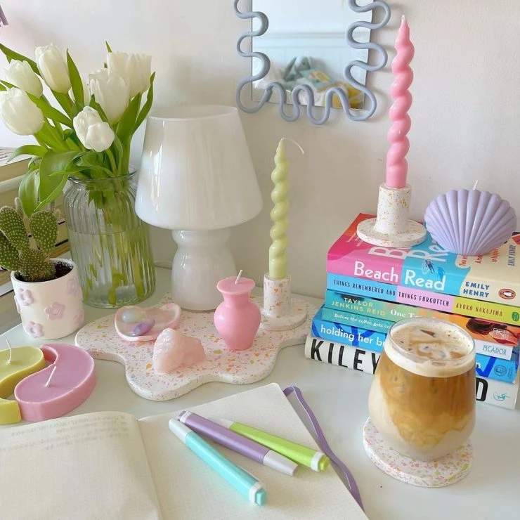 Seguramente te hayas cruzado con las pequeñas cajas de almacenaje inspiradas en las de fruta. Ellas son un must have del danish pastel y se complementan con elementos como velas, jarrones, conchas de mar, flores y demás accesorios en formas curvas y, por supuesto, en colores pasteles.