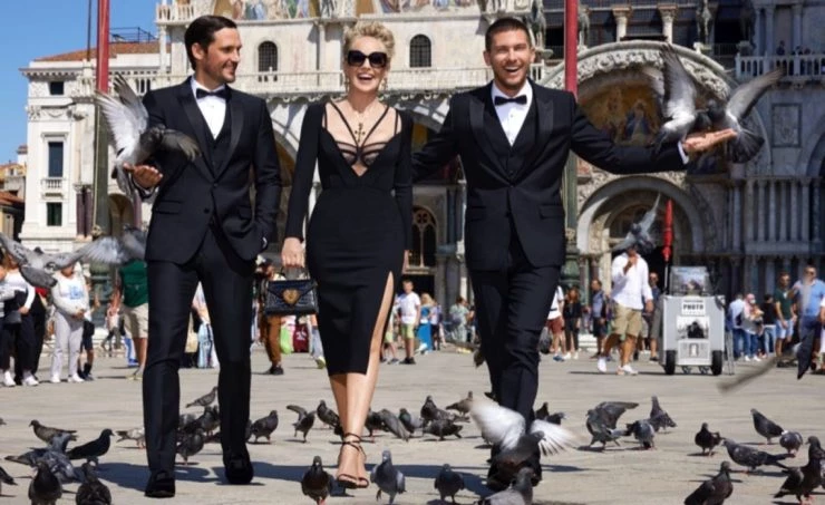 Con la elegancia y el glamour que tanto la caracterizan, Sharon Stone posó para la nueva campaña de Dolce & Gabbana con sofisticados looks en total black. En una galería techada y de la mano de dos modelos masculinos, la actriz posó con un diseño de vestido de largo midi, escotado, con aberturas y tiras entrecruzadas en los laterales de la prenda.