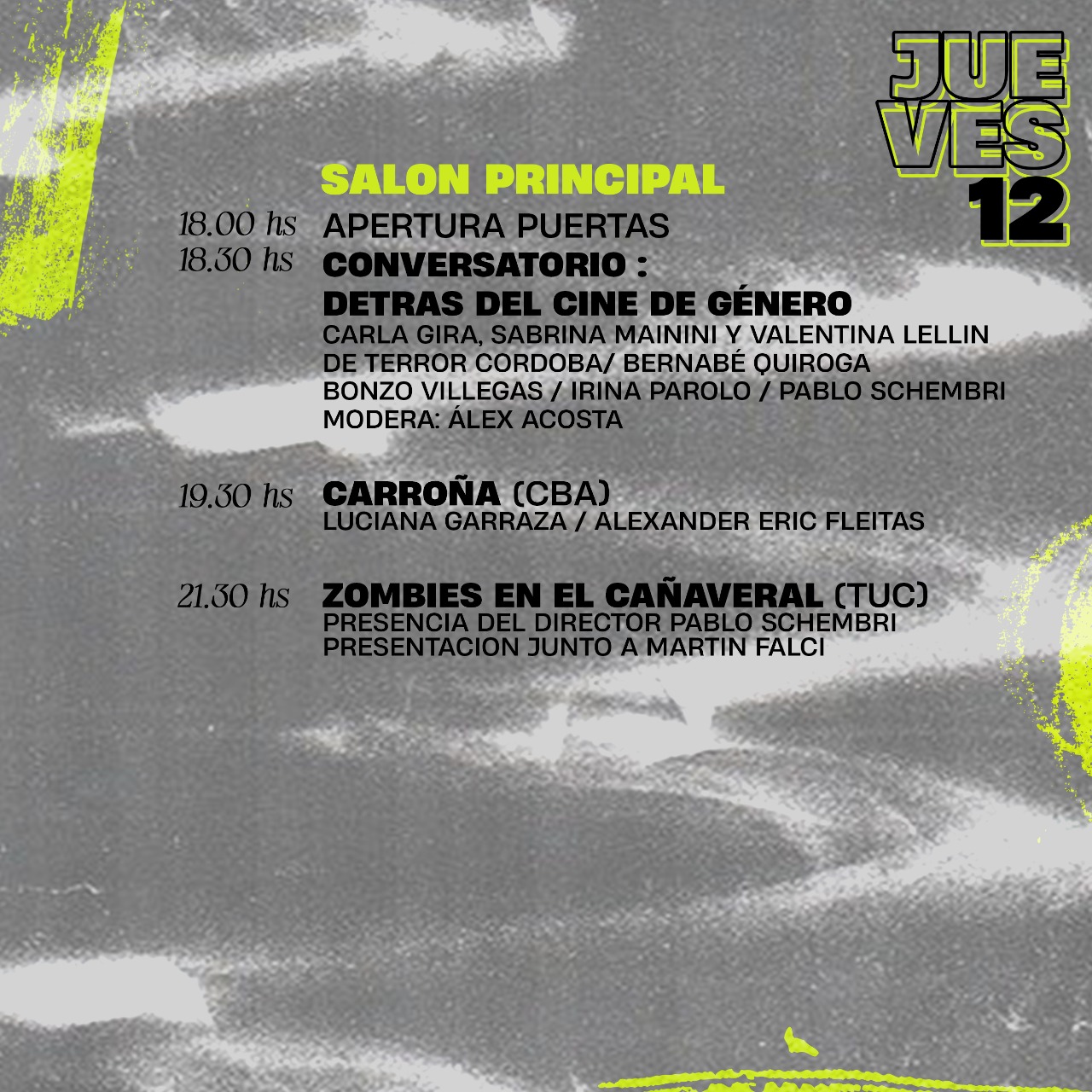 La muestra contará con dos días de exhibición, dos funciones por cada uno, donde se proyectarán cortometrajes que han formado parte del Festival a lo largo de sus ediciones y dos largometrajes que se destacan, el ganador de nuestra última edición: “Al morir la Matineé” film uruguayo de Maximiliano Contenti y la película tucumana “Zombies en el cañaveral” que contará con la presencia de su director Pablo Schembri, en compañía del Director Martin Falci que estará a cargo de las presentación.