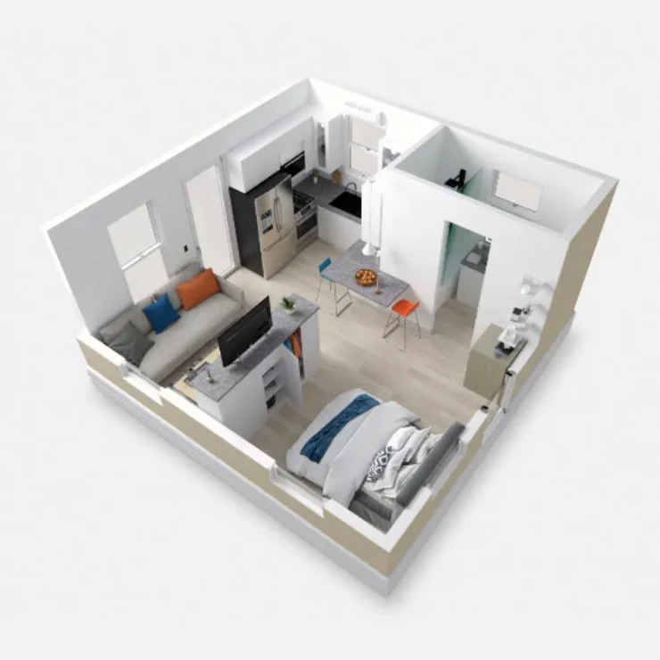 'Boxabl Casita' se instala en tan solo una hora a través de una tecnología patentada y de última generación. Puede construirse para vivir fuera de la red eléctrica o viene preparada para conectarse a los servicios públicos.