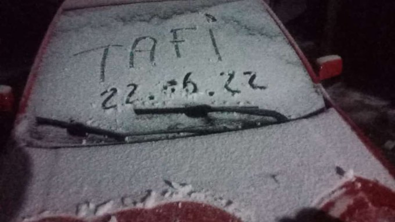 Un chofer de la empresa de transporte Aconquija compartió en las redes las imágenes de Tafí del Valle cubierta por la nieve.