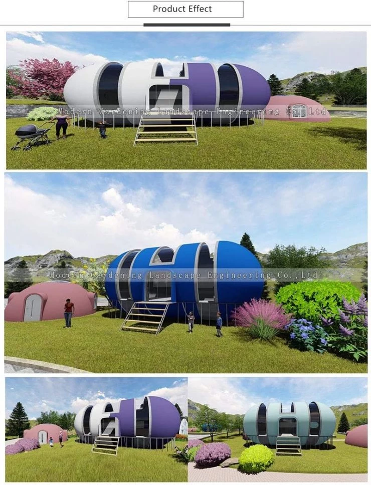 Sus formas redondeadas están pensadas para resistir vientos huracanados y facilitar la evacuación de agua en caso de lluvia. La gama de casas prefabricadas en forma de cápsula de Modern Gardening Landscape Engineering está disponible en Amazon a partir de 2.500 euros.