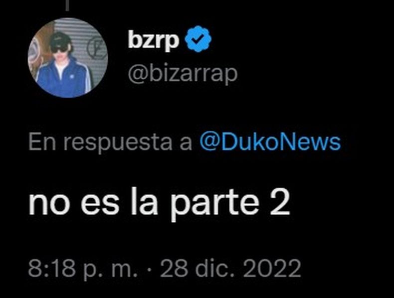 Inmediatamente, comenzó el rumor de que este tema era la segunda parte de la Music Session #50 con Duki, pero el propio Bizarrap lo descartó casi al mismo tiempo que publicó la historia. "No es la parte 2", twitteó el productor en respuesta a una cuenta especializada en noticias del artista que protagoniza ambas canciones.