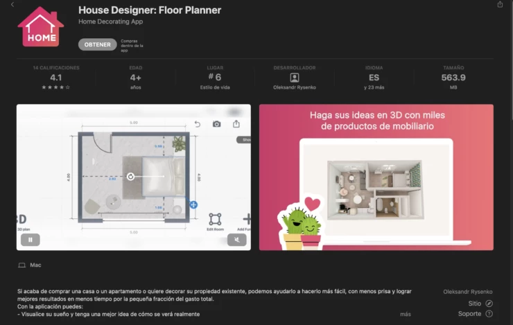 Es una de las apps más populares y simples de usar. Trabaja con diseños en 2D, 3D y HD partiendo del propio espacio en el estado en el que se encuentra en el momento actual o desde un diseño a partir de cero. Entre sus ventajas, cuenta con un amplio catálogo con accesorios y elementos deco para todos los gustos.